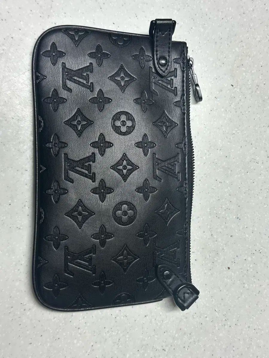 ルイヴィトンのポーチ クラッチバッグです。ブラック カラーにルイヴィトンのシグネチャー パターンが魅力的です。正規品は 맞지만 品質保証書が無く 安く 出品します。