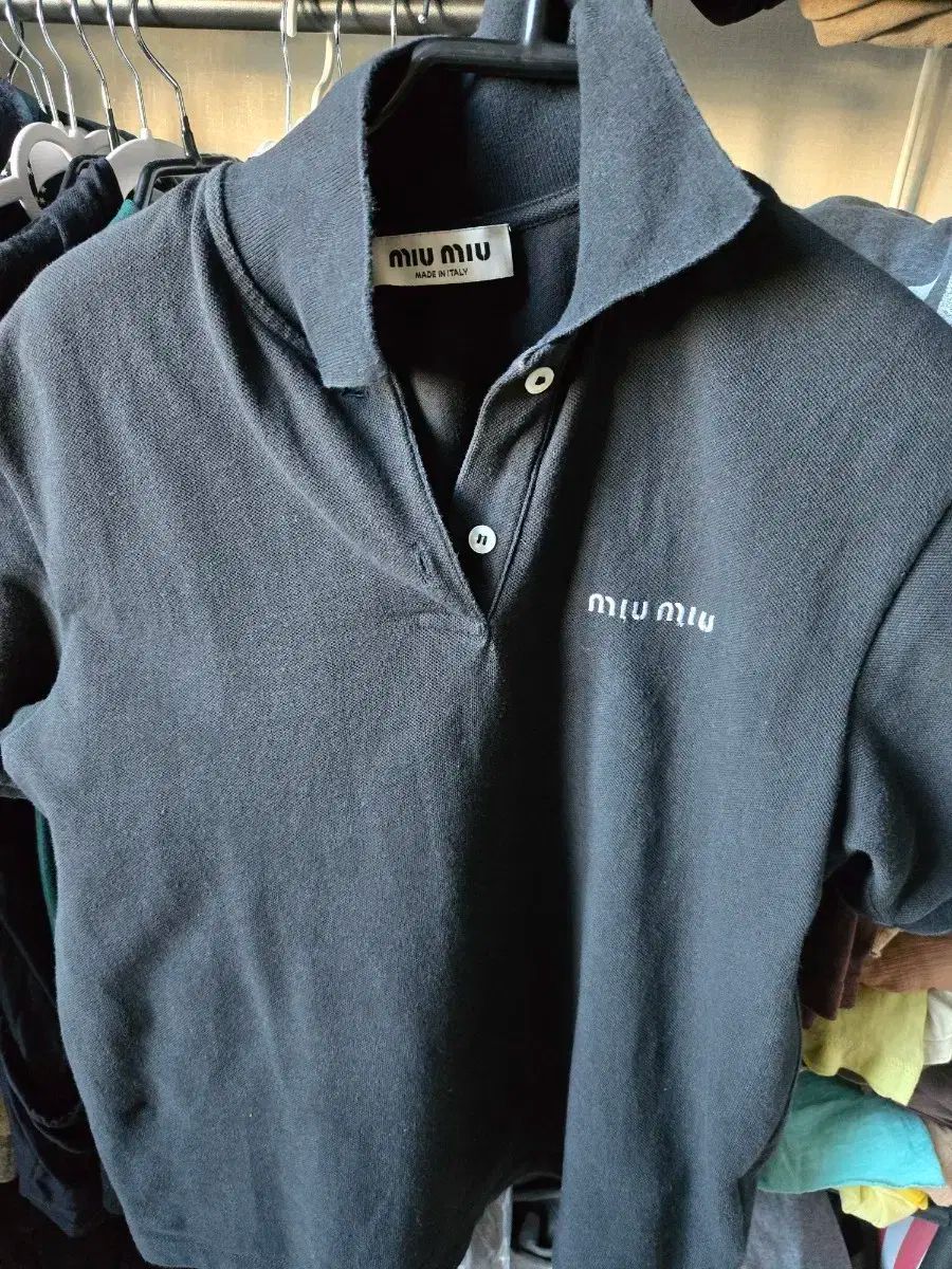 ミュウミュウブラックカラー半袖ポロ Tシャツ。'23年にCreamから買ったので購入しましたが、小さいので出しています。純正品として購入しましたが、よくわかりませんよ~正面にミュウミュウのロゴが刺繍されています。オーケーなデザインなので、どんな服装にも合います。ご不明な点がなければ、すぐに安心してお支払いいただけます!