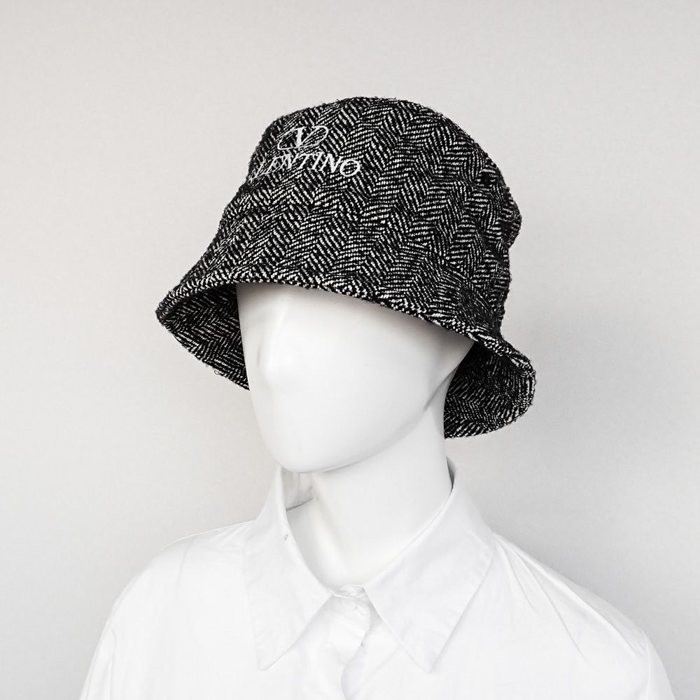 ヴァレンティノ バケットハット レディース ツイード 帽子 ウール グレー