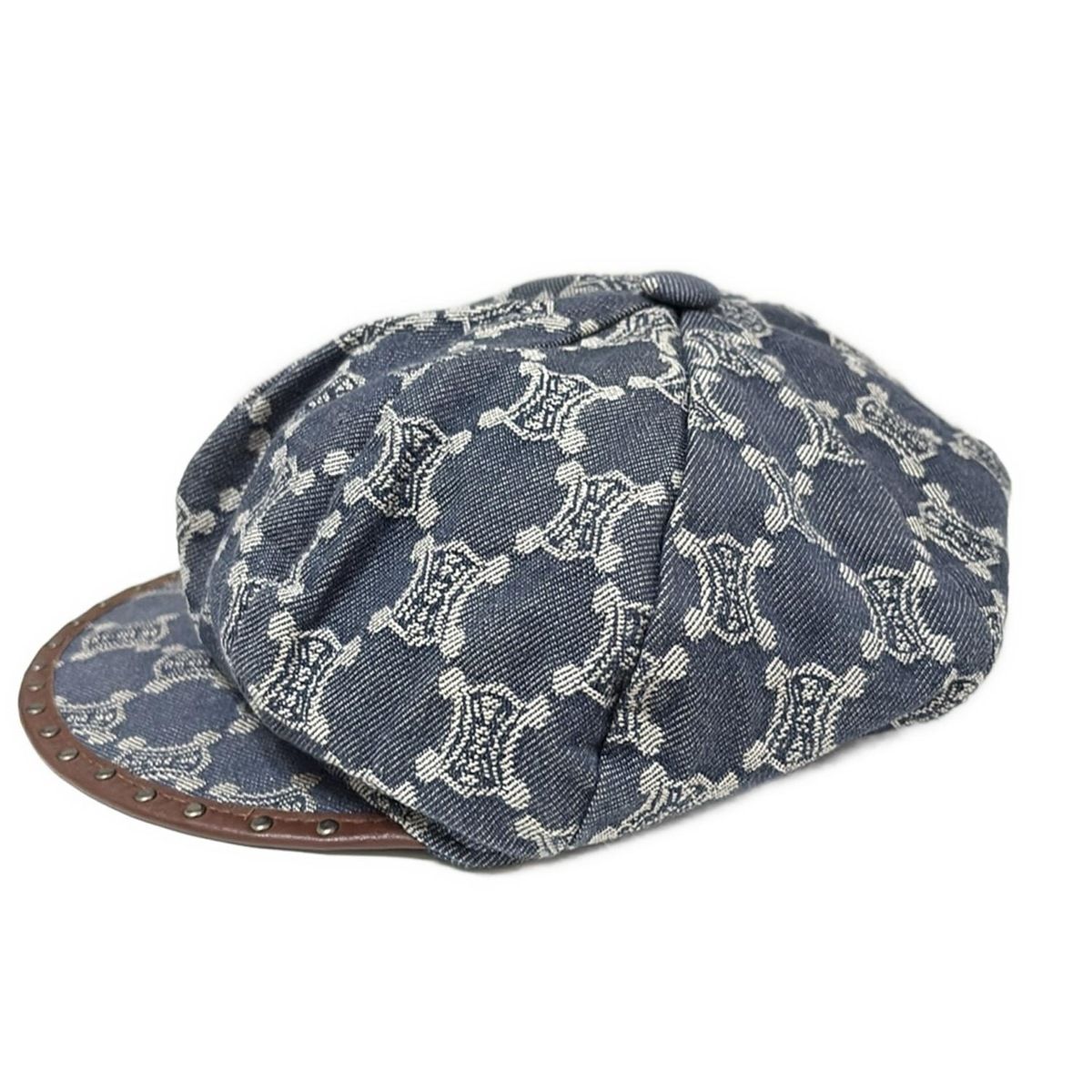 CELINE セリーヌ 帽子 S - ネイビー×ライトグレー×ダークブラウン キャスケット マカダム柄 スタッズ レザー