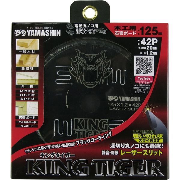 種類2 2 山真製鋸 Y sGOD JAPAN 木工用 チップソー キングタイガー MAT KT 125_10 ブラックコーティング レーザースリット 丸のこ