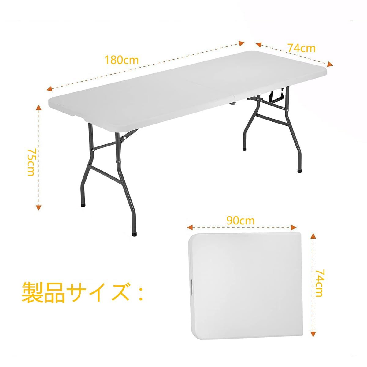 【素材】天板/HDPE(軽量 高密度ポリエチレン) 脚部:スチール 。 附:折りたたみ時持ち運びハンドル付き。