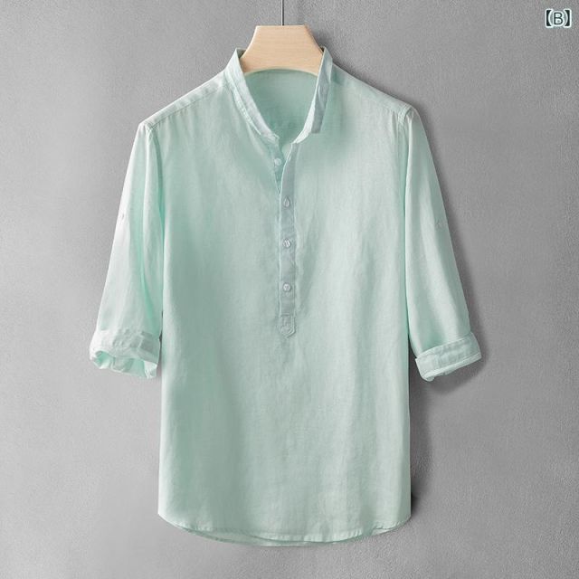 2 XL メンズ ファッション 服 男性用 オシャレ シンプル 大人 かっこいい 大きいサイズ ストリート 紳士服 夏 スモール リネン 半袖 シャツ フル 通気性 綿 トップス