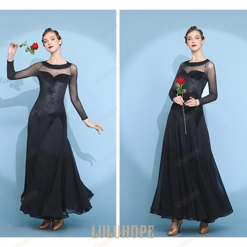 社交ダンスドレスレディース モダンダンス ロング丈ワンピース 長袖 レッスン着 フラメンコ ワルツ ドレス スタンダード練習着 発表会用演出服ZYL 135タイム