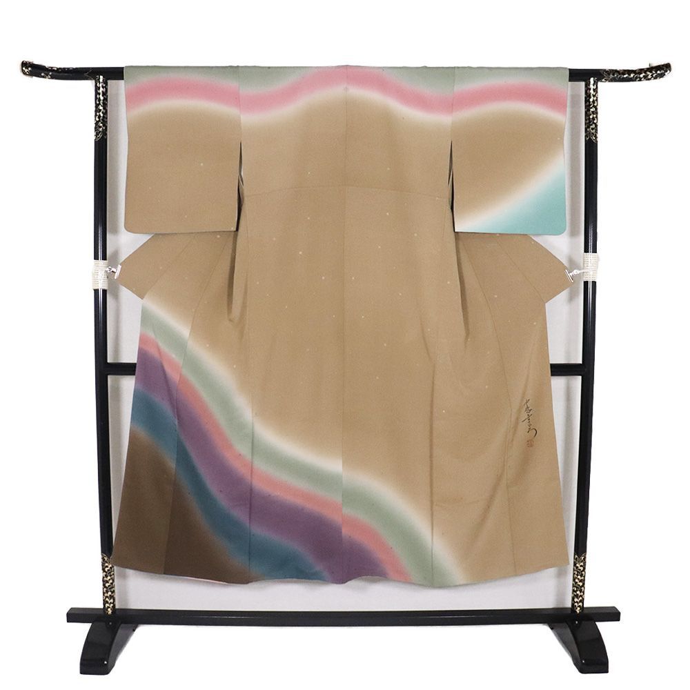中嶋まさひろ作 訪問着 袷 正絹 緑 ピンク 紫 抹茶色 濃茶 暈し SSサイズ ki 31093 レディース セミフォーマル 30代 40代 50代 み
