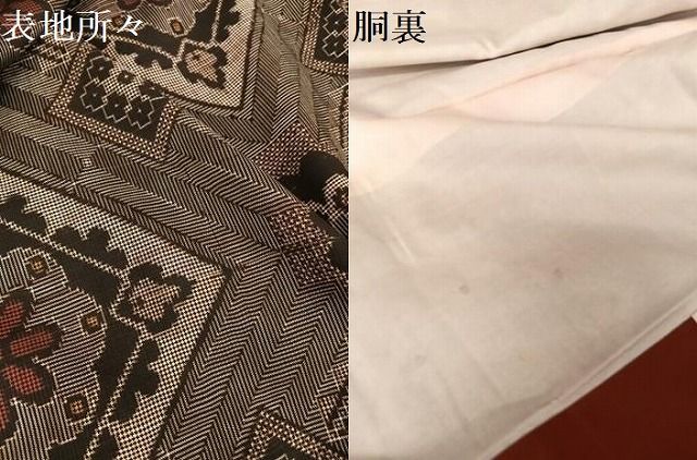 状態は接写画像のように表地所々・胴裏にシミがございます。