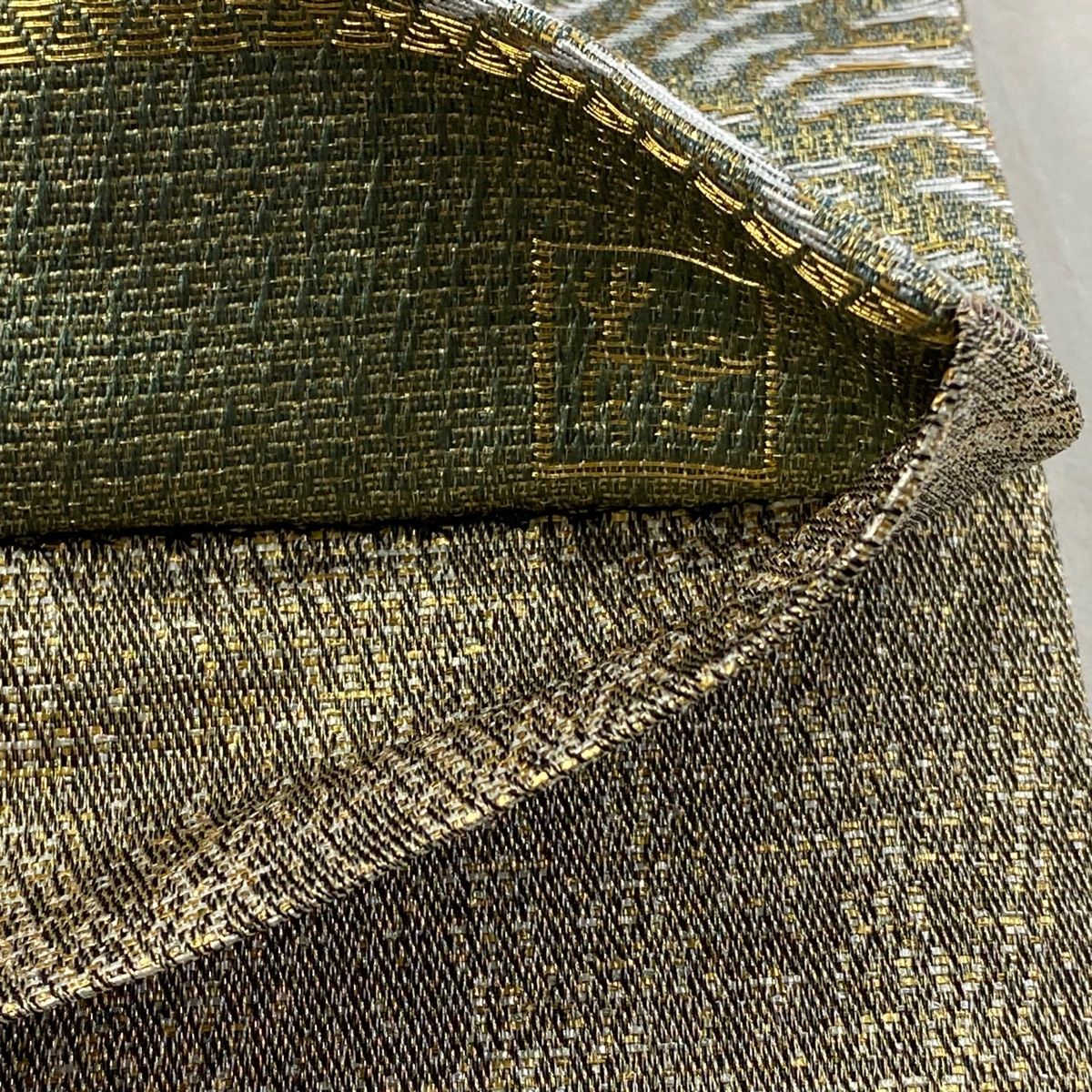 袋帯 秀品 落款 草花 波頭 金糸 箔 灰緑 六通 正絹