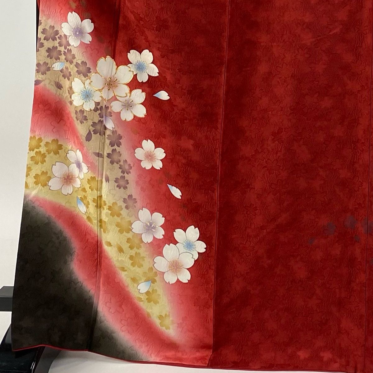 振袖 身丈166.5 cm 裄丈67.5 L 袷 桜 花びら 金糸 金彩 赤 正絹