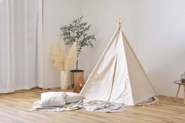 天然木 パイン とコットンのティピーテント 収納袋付 W 120 D 150 cm No 93 アイボリー