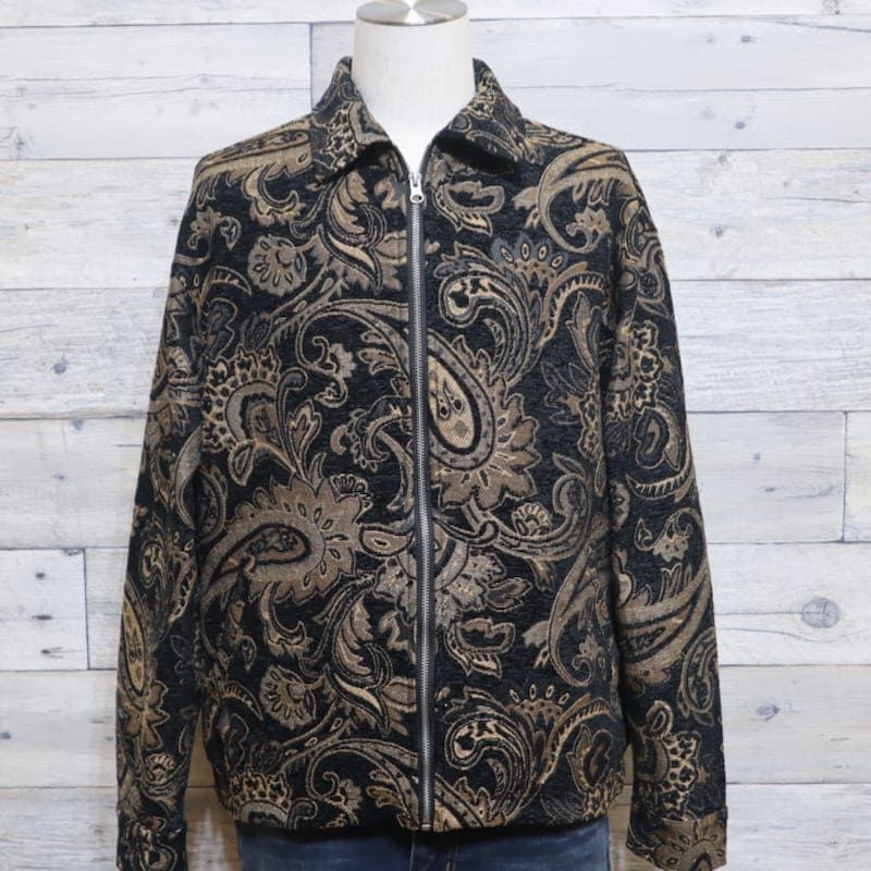 POWER TO THE PEOPLE メンズ ゴブラン ドリズラー ジャケット アウター 羽織 ジップアップ ブルゾン ペイズリー柄 柄ジャケット 総柄 秋 冬 春 ユニセックス 黒 ブラック