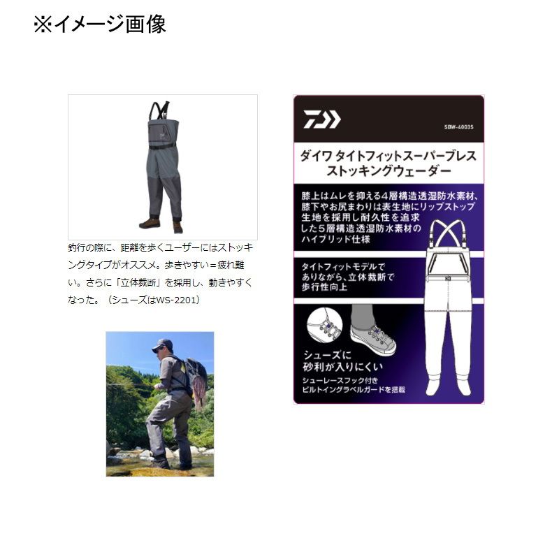ダイワ Daiwa SBW 4003 S タイトフィット スーパーブレスストッキングウェーダー ソックス先丸 グレー L