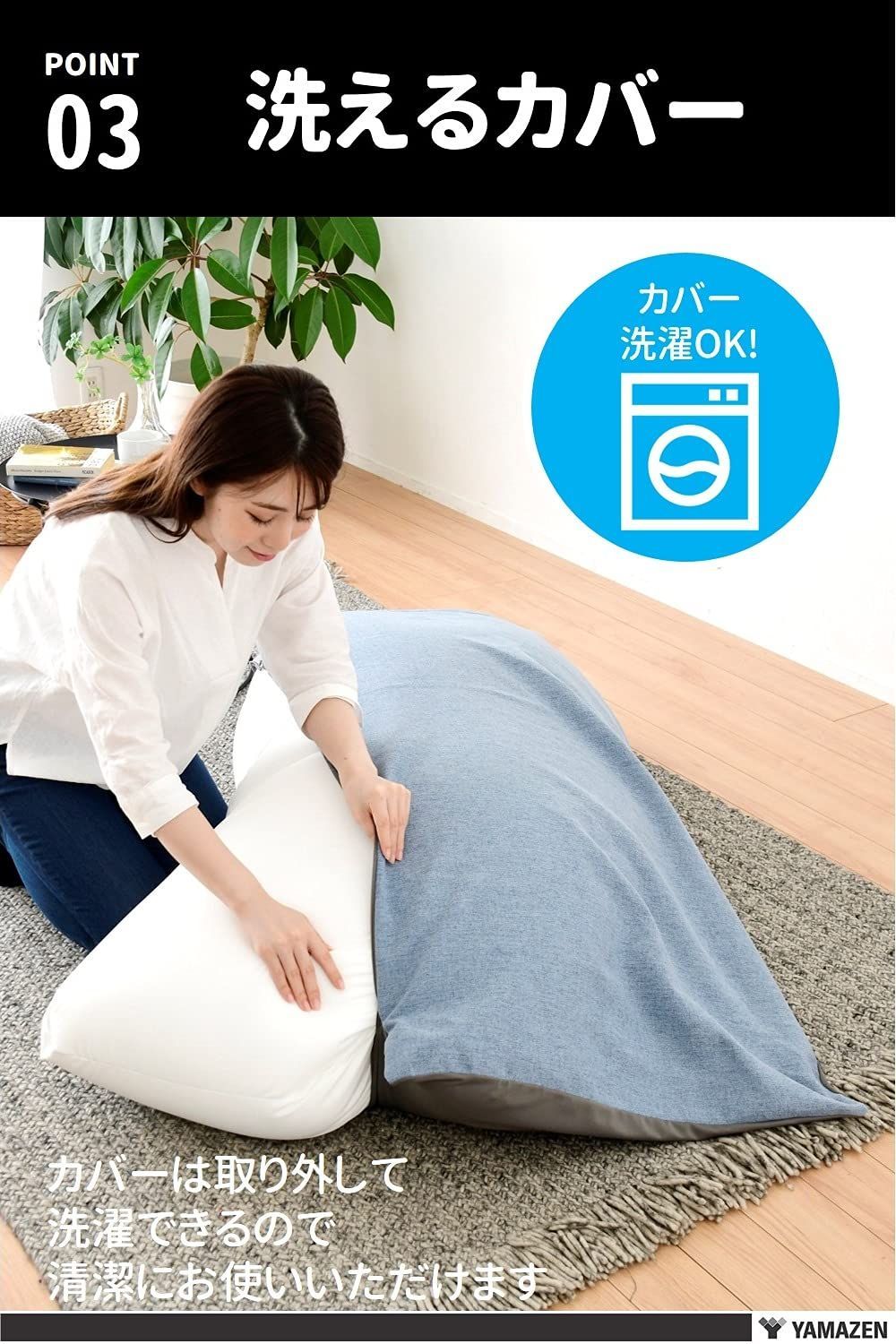 ビーズソファー 特大 幅142×奥行65×高さ35 cm ビーズクッション 2 WAY かため 伸びる生地 カバーが洗える 山善 ビーズ注入口あり ブルー グレー BS 42-1465 BL GY