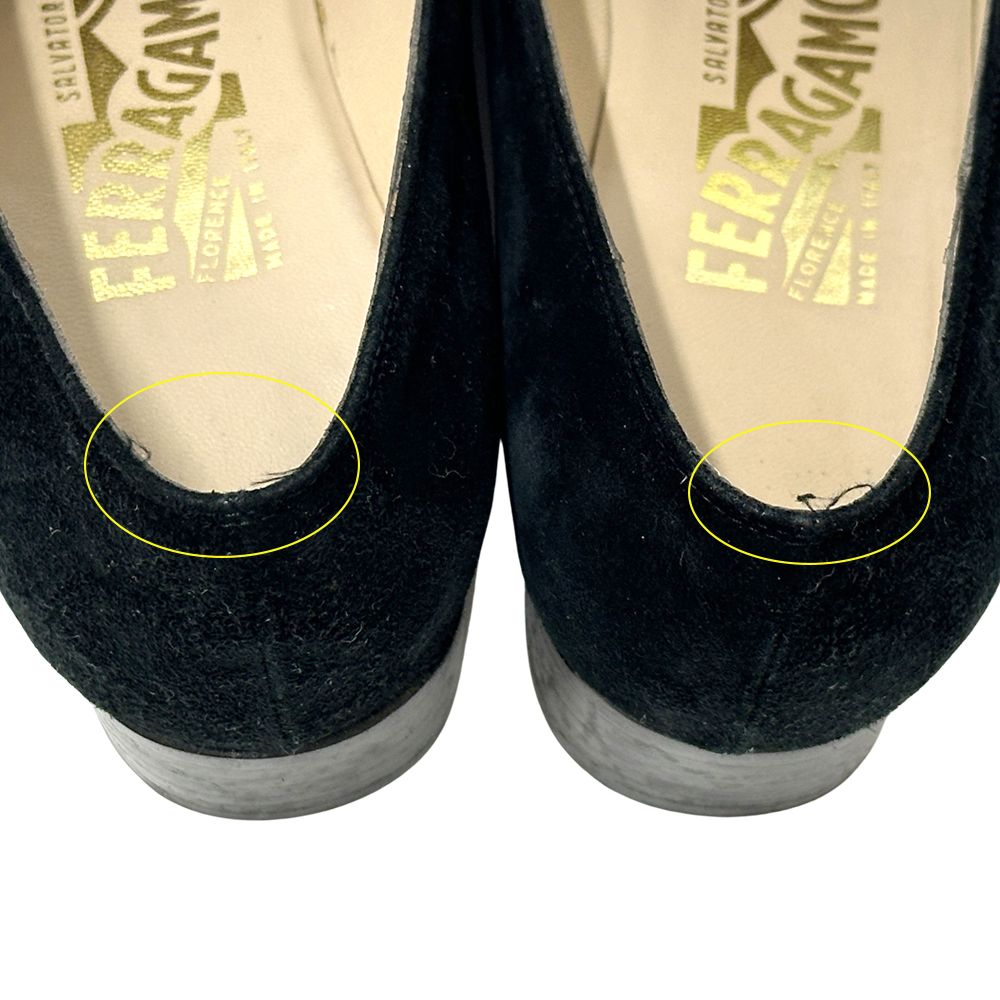 フェラガモ Ferragamo 革靴 レディース ブランド ダブルガンチーニ ローファー スエード ブラック ゴールド金具 サイズ6 23.5 cm相当