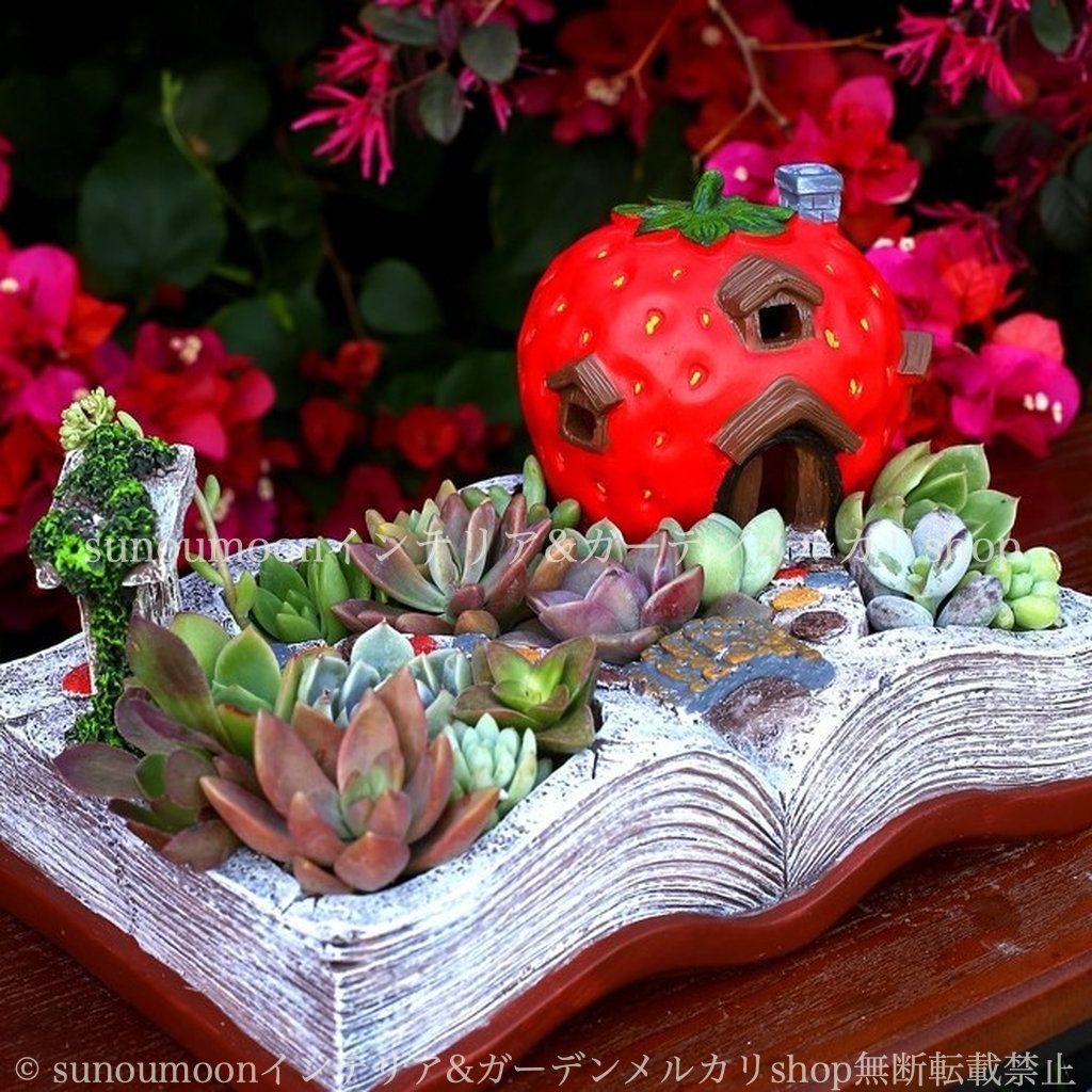ガーデン ソーラーライト 本 おしゃれ 鉢植え 樹脂 インテリア 庭の装飾 いちごの家 ガーデンインテリア ミニチュア イチゴ ガーデニング お洒落 ガーデン雑貨 植木鉢 雑貨 プランター 太陽光 8-14