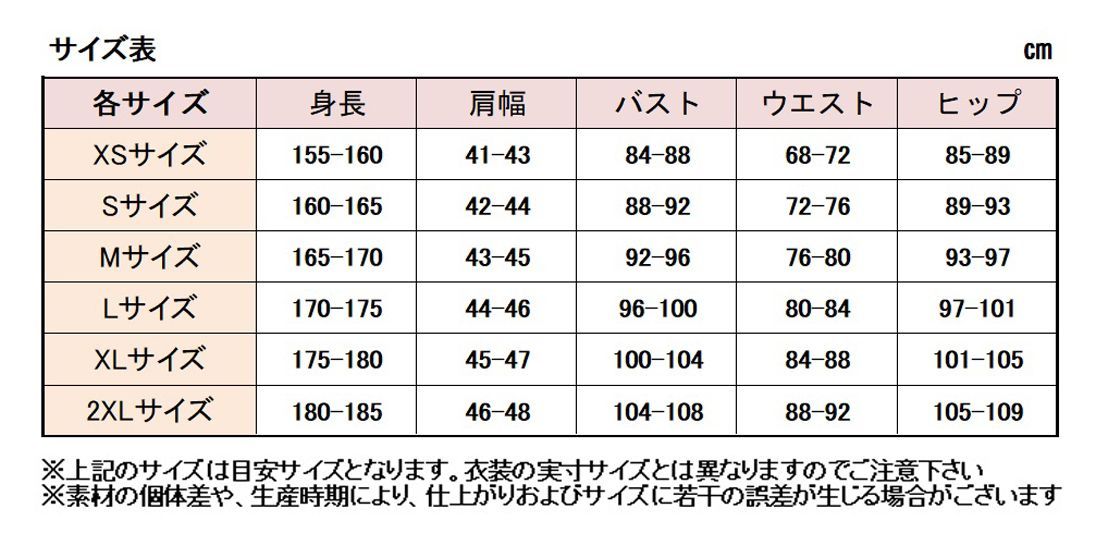 ※商品画像に記載のサイズは、衣装の実際サイズとは異なります。