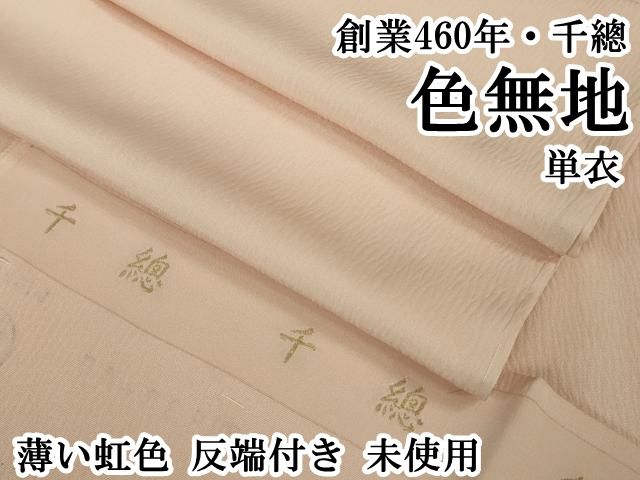 上 創業460年 千總 色無地 単衣 薄い虹色 反端付き kh 5