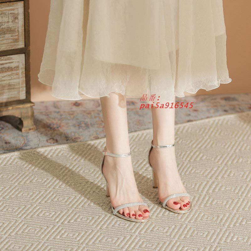 サンダル レディース ヒール ストラップ ピンヒール 靴 大人 春夏 歩きやすい 美脚 ヒール 8 10CM 万能 シンプルアンクルヒール ハイヒール ピンヒール シルバー C0X0