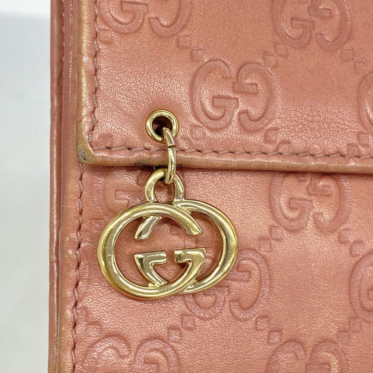 5 ic 3523 グッチ 財布 グッチシマ 212105 レザー ピンク ゴールド金具 レディース