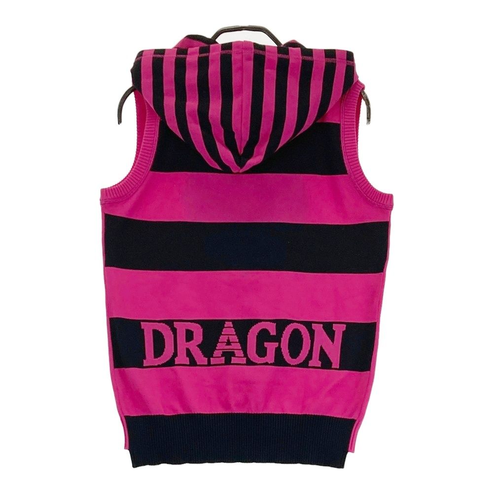 サイズ 2 DANCE WITH DRAGON ダンスウィズドラゴン フード付 ニットベスト チビドラ ボーダー柄 ピンク系 ゴルフウェア レディース ストスト