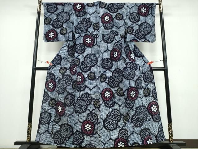 平和屋着物∴夏物 浴衣 有松鳴海絞り 亀甲舞菊文 綿 ng