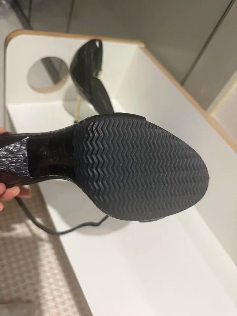 カードガイガーヒールサンダルはサイズ240です。シルバーのヒールがアクセントのブラックサンダルヒールです。靴底の摩耗がほとんどない清潔な靴です。ご不明な点がなければ、すぐに安心してお支払いいただけます!