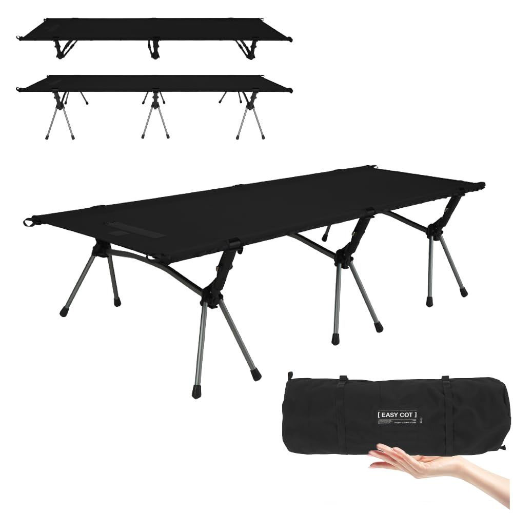 訳あり 外箱段ボール無し 中身は です CAMVIL EASYCOT 2 WAY アジャスタブル コット 高密度1000 D 幅68|78 cmブラック M